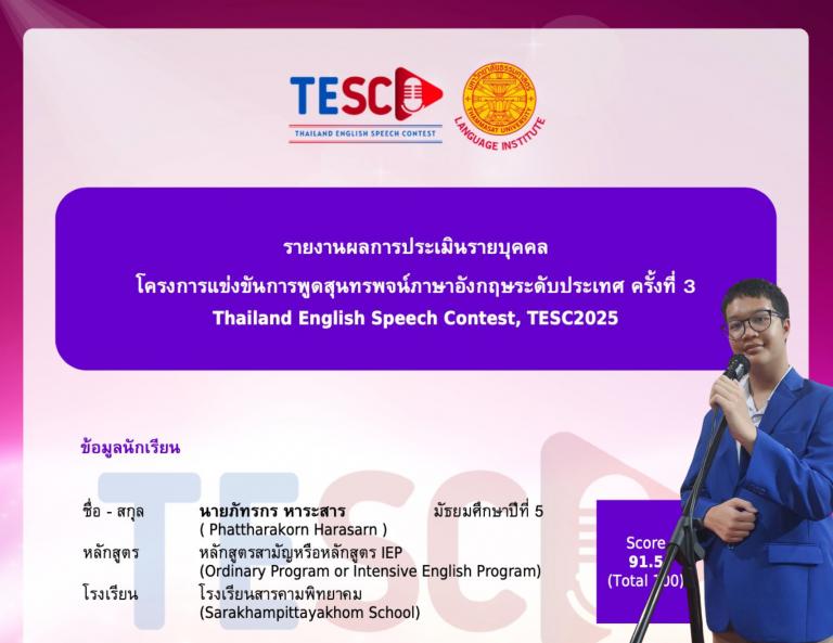 ขอแสดงความยินดีกับนายภัทรกร หาระสาร คว้า The Speaker’s Honor ลำดับ 10 ของประเทศ