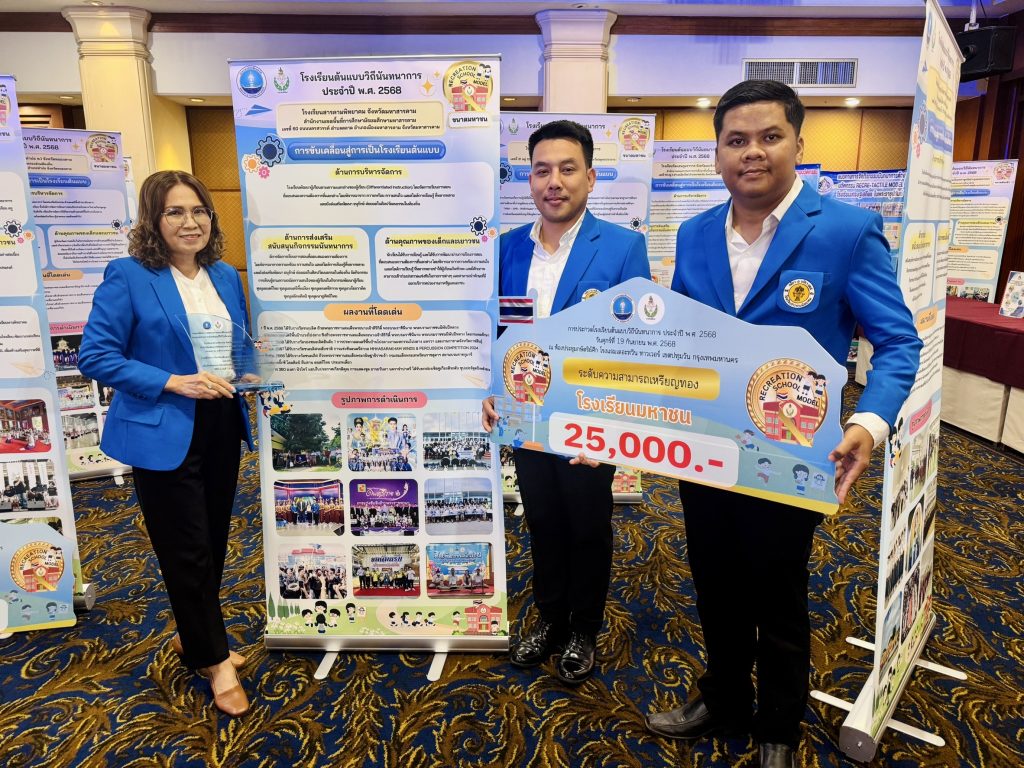 เมื่อวันที่ 19 กันยายน 2568 นายทรงศักดิ์ ชาวไพร ผู้อำนวยการโรงเรียนสารคามพิทยาคม มอบหมายให้นางสาวธนาวดี แสนพินิจ รองผู้อำนวยการกลุ่มงานบริหารบุคคล และตัวแทนกลุ่มสาระการเรียนรู้วิทยาศาสาตร์ เข้ารับรางวัลงานประกวดโรงเรียนต้นแบบวิถีนันทนาการ ประจำปี พ.ศ.2568 “RECREATION FOR ALL : พื้นที่สร้างสรรค์ วิถีนันทนาการ สู่สังคมแห่งการเรียนรู้“ ณ ห้องประชุมกษัตริย์ศึก โรงแรมเดอะทวิน ทาวเวอร์ เขตปทุมวัน กรุงเทพมหานคร จัดโดยกรมพลศึกษา กระทรวงท่องเที่ยวและกีฬา โรงเรียนสารคามพิทยาคม ได้รับ โล่รางวัล ระดับความสามารถเหรียญทอง ขนาดมหาชน พร้อมทุนสนับสนุนกิจกรรม จำนวน 25,000 บาท