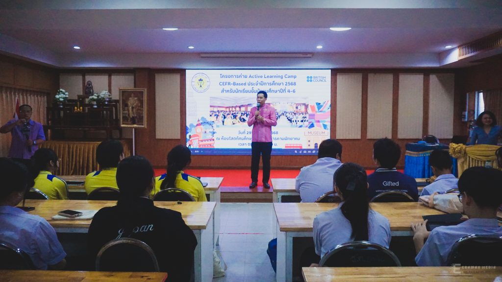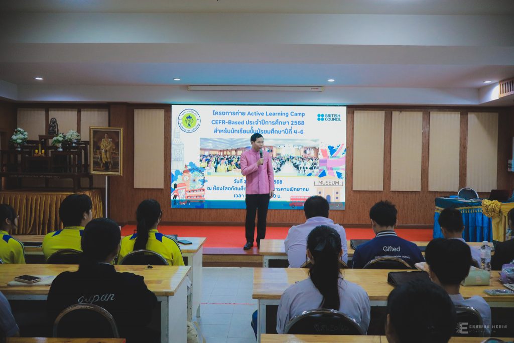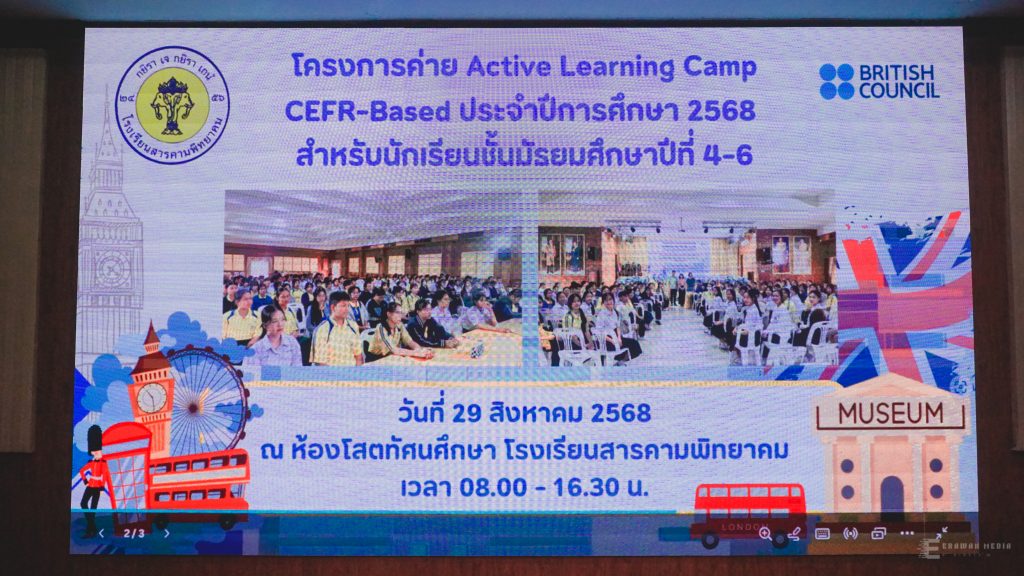 บรรยากาศโครงการ Active Learning Camp CEFR-Based ปีการศึกษา 2568 (มีคลิป) เมื่อวันศุกร์ที่ 29 สิงหาคม 2568 นายทรงศักดิ์ ชาวไพร ผู้อำนวยการโรงเรียนสารคามพิทยาคม เป็นประธานพิธีเปิดโครงการ Active Learning Camp CEFR-Based ประจำปีการศึกษา 2568 โดยกลุ่มสาระการเรียนรู้ภาษาต่างประเทศ ณ ห้องโสตทัศนศึกษา คลิกดูภาพทั้งหมด