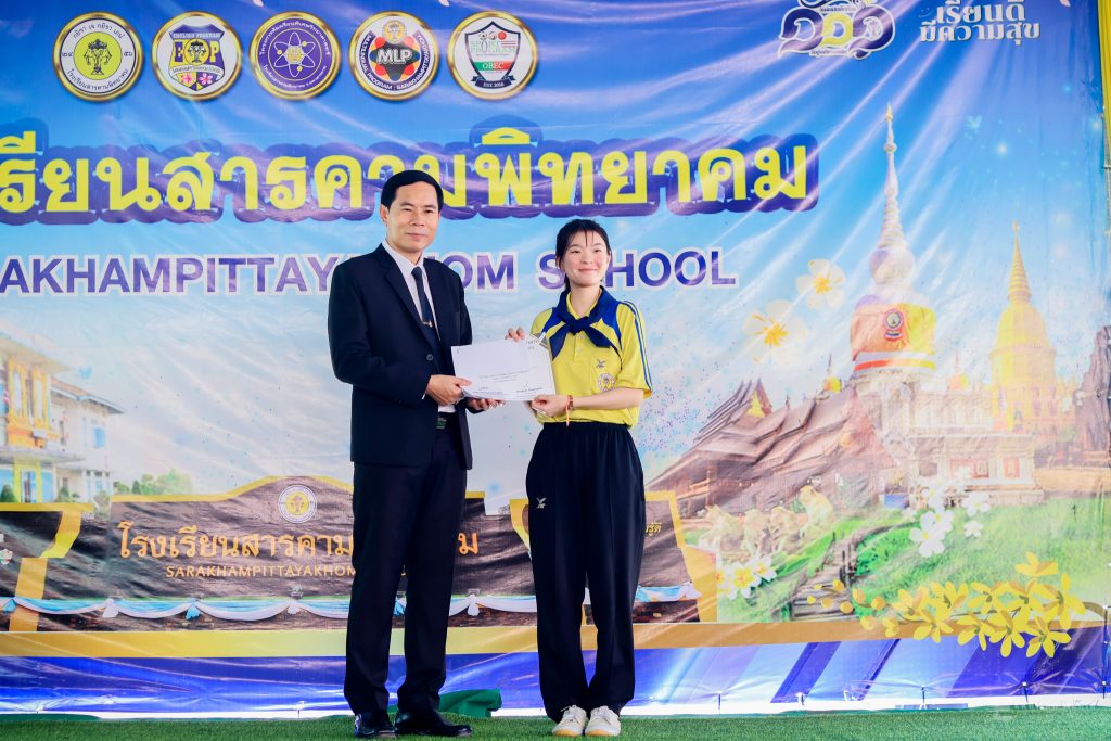พิธีมอบเกียรติบัตรนักเรียนที่ได้รับรางวัลการแข่งขันทักษะภาษาอังกฤษ ปีการศึกษา 2568 เมื่อวันที่ 30 ตุลาคม 2568 นายทรงศักดิ์ ชาวไพร ผู้อำนวยการโรงเรียนสารคามพิทยาคม เป็นประธานพิธีมอบเกียรติบัตรนักเรียนที่ได้รับรางวัลการแข่งขันทักษะภาษาอังกฤษ กลุ่มสาระการเรียนรู้ภาษาต่างประเทศ ประจำปีการศึกษา 2568 คลิกดูภาพทั้งหมด