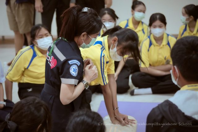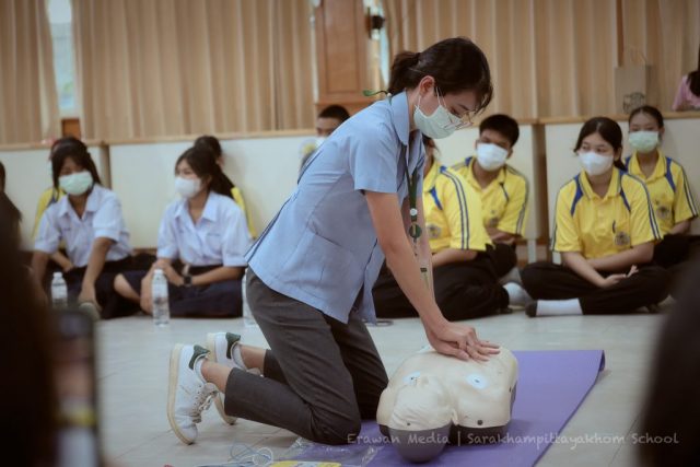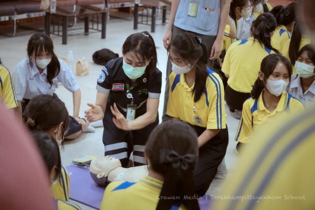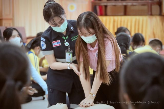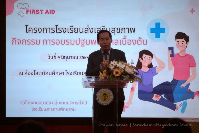 การอบรมการปฐมพยาบาลเบื้องต้นโครงการโรงเรียนส่งเสริมสุขภาพ ปีการศึกษา 2568 เมื่อวันที่ 4 มิถุนายน 2568 งานอนามัยโรงเรียนสารคามพิทยาคมร่วมกับโรงพยาบาลมหาสารคามจัดการอบรมเชิงปฏิบัติการ การปฐมพยาบาลเบื้องต้นตามโครงการโรงเรียนส่งเสริมสุขภาพ ปีการศึกษา 2568 ณ ห้องโสตทัศนศึกษา โรงเรียนสารคามพิทยาคม คลิกดูภาพทั้งหมด