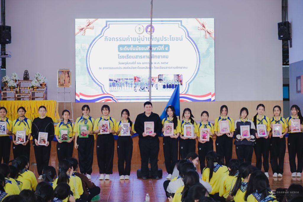 พิธีเปิดกิจกรรมเข้าค่ายผู้บำเพ็ญประโยชน์ระดับชั้นมัธยมศึกษาปีที่ 4 ปีการศึกษา 2568 โรงเรียนสารคามพิทยาคม เมื่อวันที่ 22 มกราคม 2569 นายทรงศักดิ์ ชาวไพร ผู้อำนวยการโรงเรียนสารคามพิทยาคม มอบหมายให้กิจกรรมพัฒนาผู้เรียนจัดกิจกรรมเข้าค่ายผู้บำเพ็ญประโยชน์ระดับชั้นมัธยมศึกษาปีที่ 4 ปีการศึกษา 2568 ณ หอประชุมอาคารโดมหลังเก่า คลิกดูภาพทั้งหมด