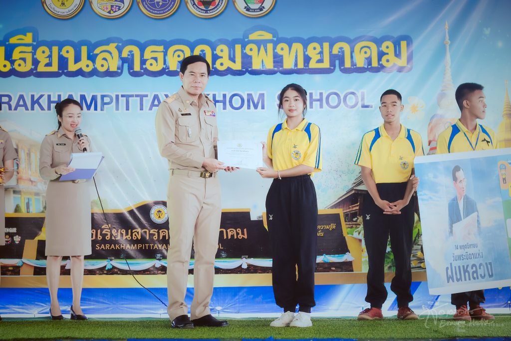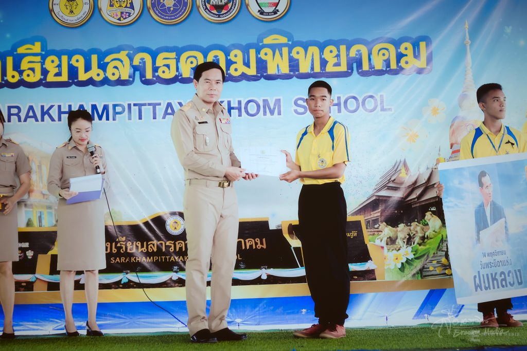 เมื่อวันจันทร์ที่ 10 พฤศจิกายน 2568 นายทรงศักดิ์ ชาวไพร ผู้อำนวยการโรงเรียนสารคามพิทยาคม มอบหมายให้กลุ่มสาระการเรียนรู้สังคมศึกษาฯ จัดกิจกรรมถ่ายทอดความรู้วันสำคัญของชาติ 14 พฤศจิกายนพระบิดาแห่งฝนหลวง และในการนี้ได้มอบเกียรติบัตรให้แก่นักเรียน ที่มาให้ความรู้เกี่ยวเนื่องกับ “14 พฤศจิกายน วันพระบิดาแห่งฝนหลวง” และมอบรางวัลสนับสนุน จำนวน 3,000 บาท ให้แก่คณะศรีอยุธยา (สีชมพู) ที่ได้รับรางวัลชนะเลิศการแข่งขันผู้นำเชียร์ (เชียร์หลีดเดอร์) งานกีฬาภายใน ลูกเอราวัณเกมส์ ประจำปีการศึกษา 2568 อีกด้วย