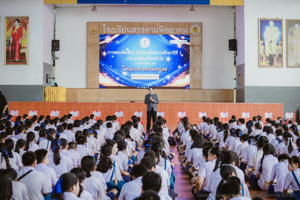 ภาพบรรยากาศการสอบคัดเลือกนักเรียนชั้นมัธยมศึกษาปีที่ 1 ประเภทห้องเรียนทั่วไป ประจำปีการศึกษา 2569 เมื่อวันที่ 28 มีนาคม 2569 นายทรงศักดิ์ ชาวไพร ผู้อำนวยการโรงเรียนสารคามพิทยาคม มอบหมายให้กลุ่มงานบริหารวิชาการ ดำเนินการจัดการสอบคัดเลือกนักเรียนเข้าศึกษาต่อ ระดับชั้นมัธยมศึกษาปีที่ 1 ประเภทห้องเรียนทั่วไป ประจำปีการศึกษา 2569 คลิกดูภาพทั้งหมด