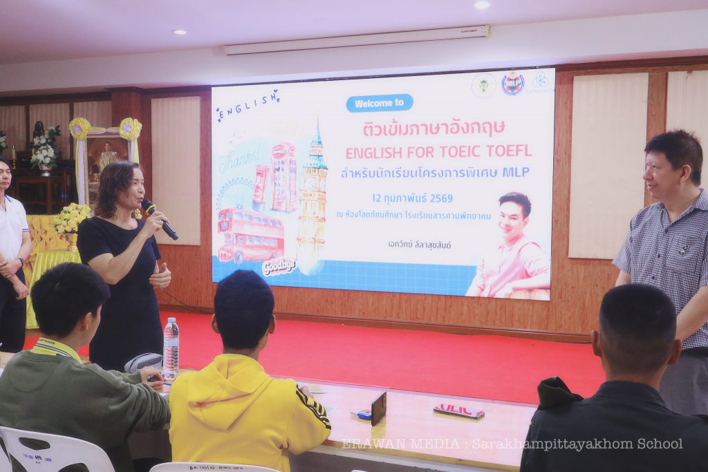 เมื่อวันที่ 12 ก.พ. 2569 นายทรงศักดิ์ ชาวไพร ผู้อำนวยการโรงเรียนสารคามพิทยาคม มอบหมายให้กลุ่มสาระการเรียนรู้ภาษาต่างประเทศ จัดโครงการติวเข้มภาษาอังกฤษ English for TOEIC TOEFL สำหรับนักเรียนโครงการห้องเรียนพิเศษภาษา (MLP) ระดับชั้น ม.4-6 โรงเรียนสารคามพิทยาคม ณ ห้องโสตทัศนศึกษา โดยวิทยากร นายเอกวิทย์ ลีลาสุขสันต์ จากสถาบันกวดวิชา Success Tutoring Academy