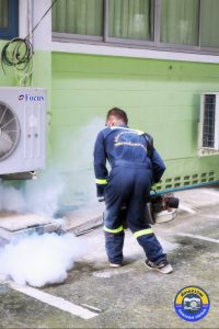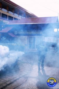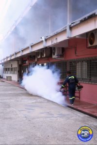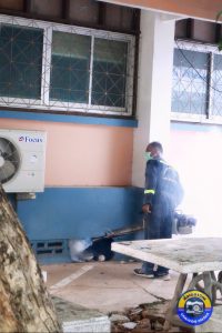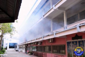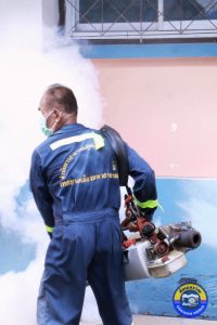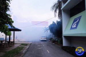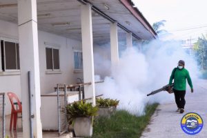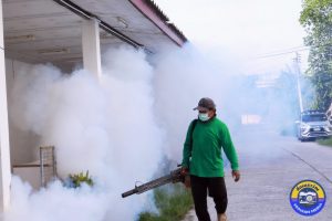 การฉีดพ่นหมอกควันกำจัดยุงลายภายในพื้นที่โรงเรียนป้องกันการแพร่ระบาดของโรคไข้เลือดออก