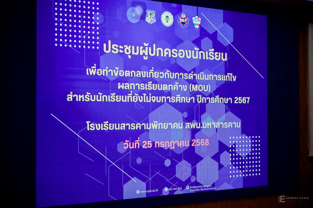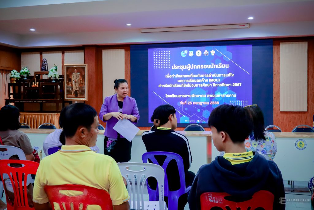 ประชุมผู้ปกครองนักเรียนเพื่อทำข้อตกลง MOU การแก้ไขผลการเรียนตกค้าง ปีการศึกษา 2567 เมื่อวันที่ 25 กรกฎาคม 2568 กลุ่มงานบริหารวิชาการ โรงเรียนสารคามพิทยาคม จัดประชุมผู้ปกครองนักเรียน เพื่อทำข้อตกลงเกี่ยวกับการดำเนินการแก้ไขผลการเรียนตกค้าง (MOU) สำหรับนักเรียนที่ยังไม่จบการศึกษา ปีการศึกษา 2567 คลิกดูภาพทั้งหมด