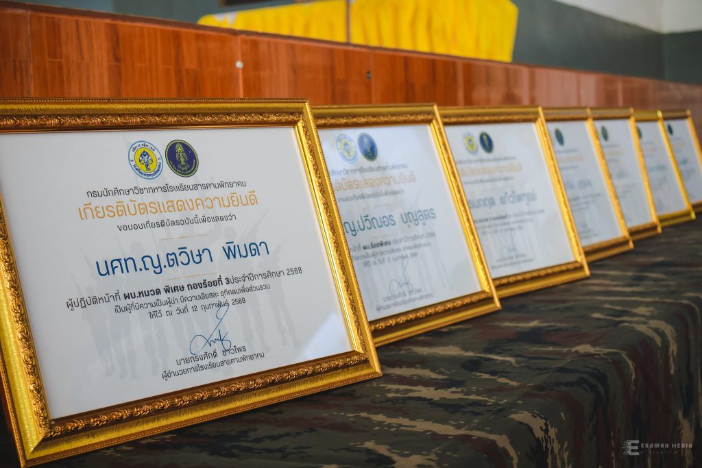 พิธีอำลากองพัน รับเกียรติบัตรนศท.ดีเด่นและประดับปลอกแขนนศท.บังคับบัญชา กรมนักศึกษาวิชาทหาร ปีการศึกษา 2568