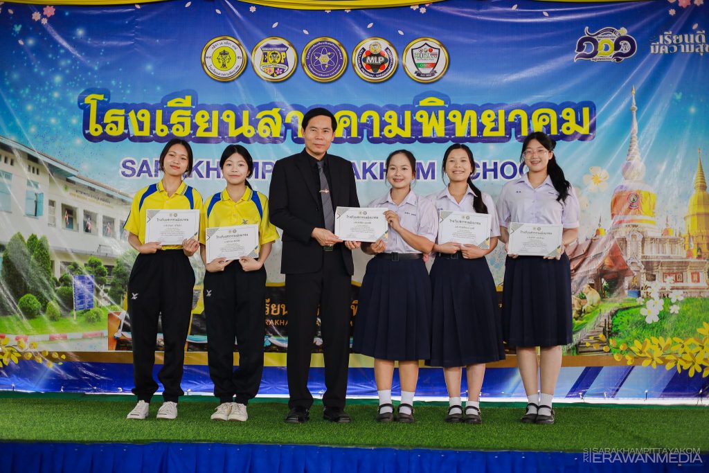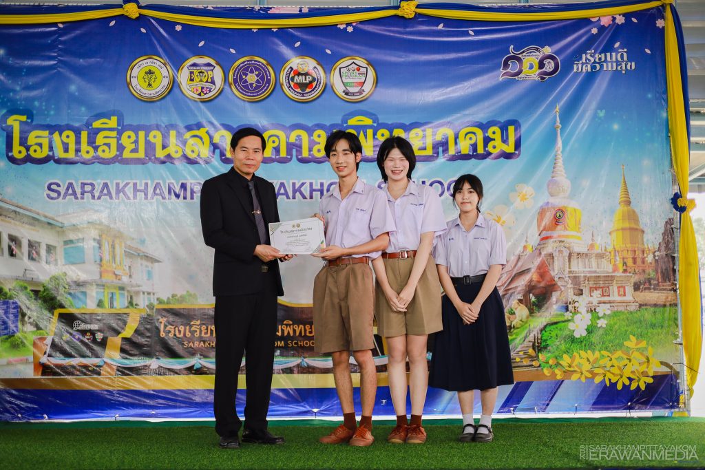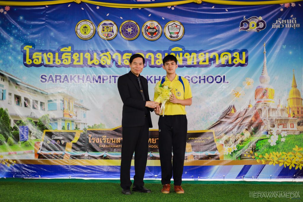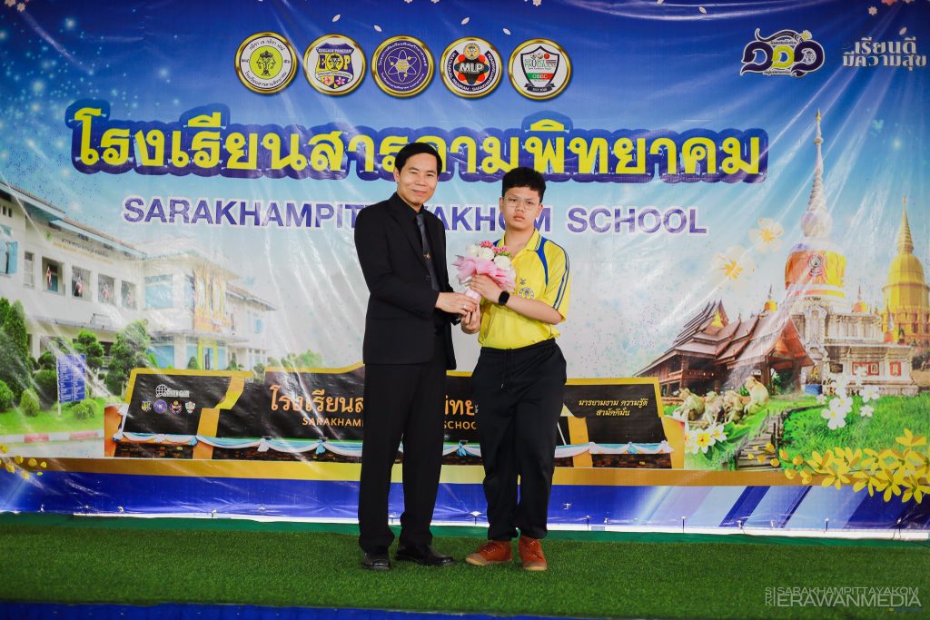 เมื่อวันศุกร์ที่ 12 ธันวาคม 2568 นายทรงศักดิ์ ชาวไพร ผู้อำนวยการโรงเรียนสารคามพิทยาคม มอบหมายให้กลุ่มสาระการเรียนรู้วิทยาศาสตร์และเทคโนโลยี จัดพิธีมอบช่อดอกไม้นักเรียนที่ผ่านการคัดเลือกเข้าค่ายโอลิมปิกวิชาการ สอวน. ค่าย2 ณ คณะวิทยาศาสตร์ มหาลัยขอนแก่น จำนวน 8 คน และมอบเกียรติบัตรให้แก่นักเรียนที่ได้รับรางวัลเข้าร่วมกิจกรรมประกวดภาพถ่ายที่ได้รางวัลชนะเลิศ,รองชนะเลิศอันดับ1,รองชนะเลิศอันดับ2 (จำนวน 2 ทีม) กิจกรรมปลูกป่าชายเลน ค่ายวิจัยเพื่อพัฒนานักเรียนสู่นักวิจัยและพัฒนาทักษะทางวิชาการ ณ บ้านคลองโคนรีสอร์ท จังหวัดสมุทรสงคราม ณ อาคารโดมหลังใหม่ โรงเรียนสารคามพิทยาคม