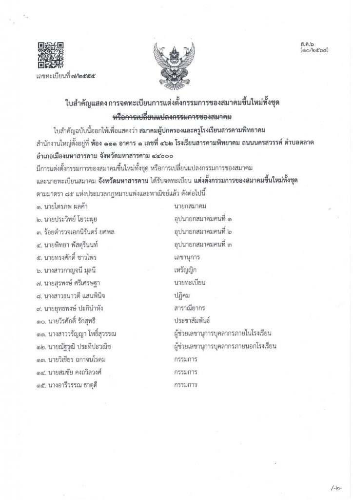 ประกาศรายชื่อคณะกรรมการสมาคมผู้ปกครองและครูโรงเรียนสารคามพิทยาคม ปี 68 ประกาศรายชื่อคณะกรรมการบริหารสมาคมผู้ปกครองและครูโรงเรียนสารคามพิทยาคมชุดใหม่ ประจำปี 2568 ดังรายละเอียด
